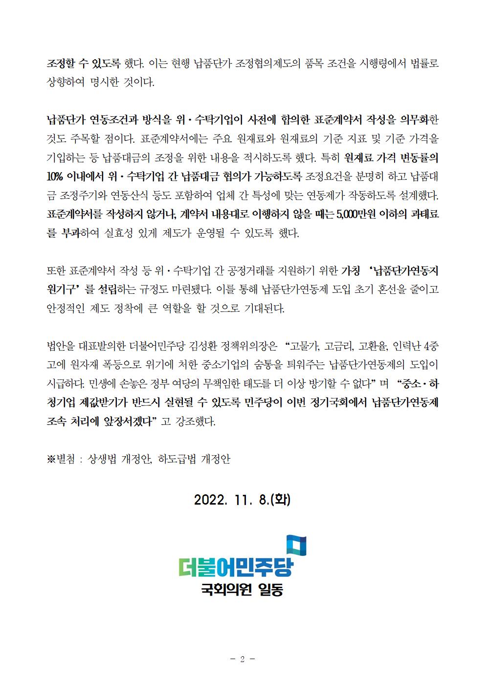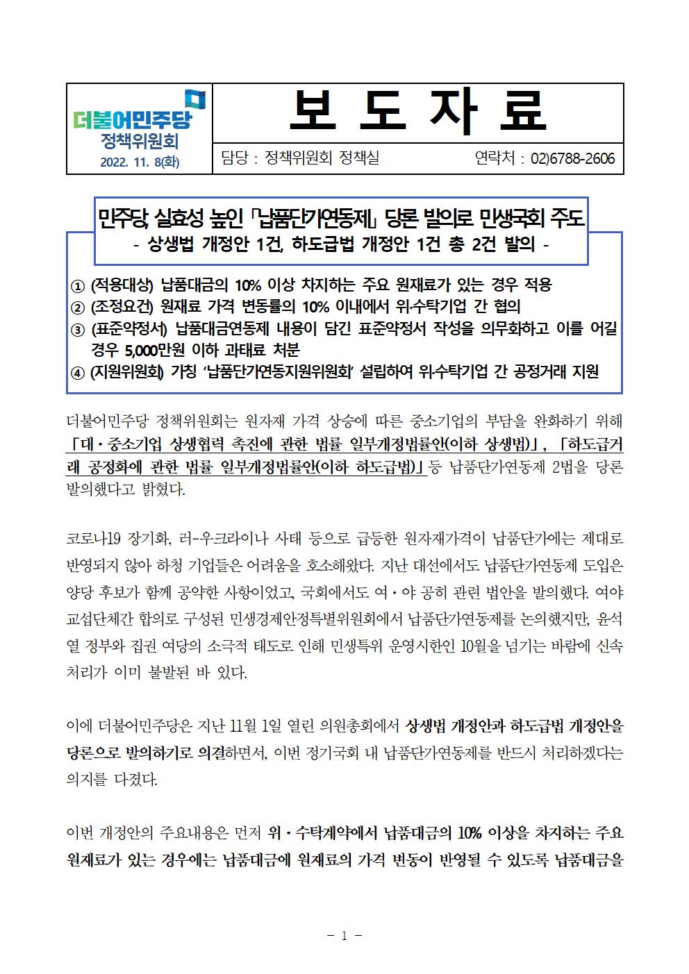 221108_(보도자료)_납품단가_연동제_당론발의.hwp