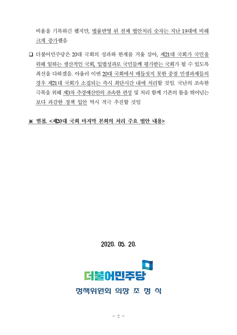200520_보도자료(정책위)_20대_국회_마지막_본회의_입법성과.hwp