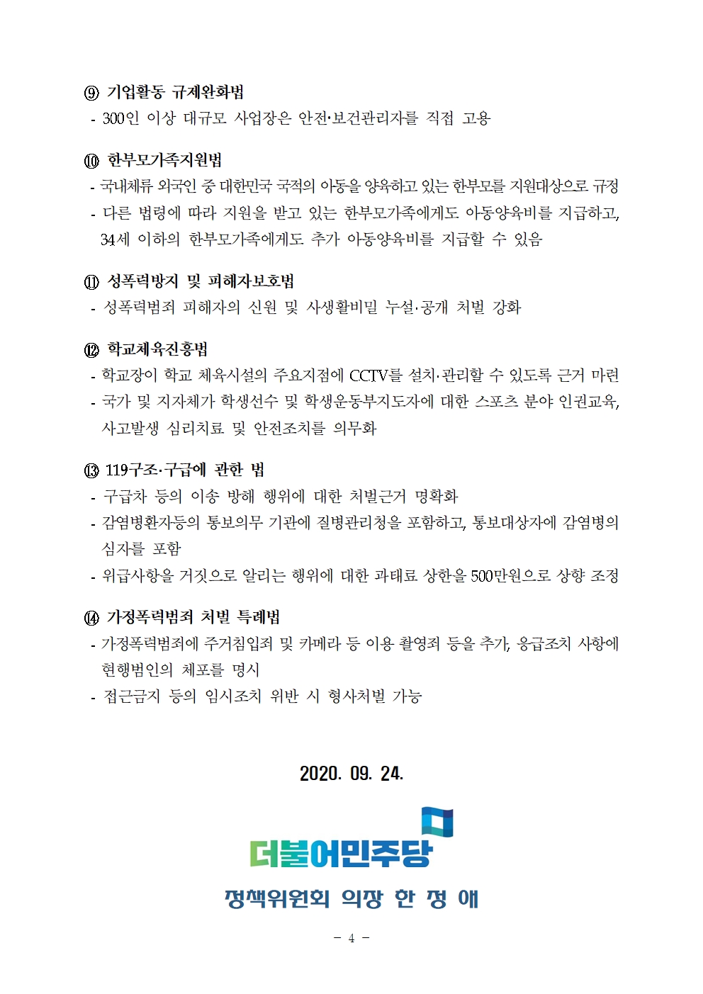 9월 정기국회 입법성과 보도자료