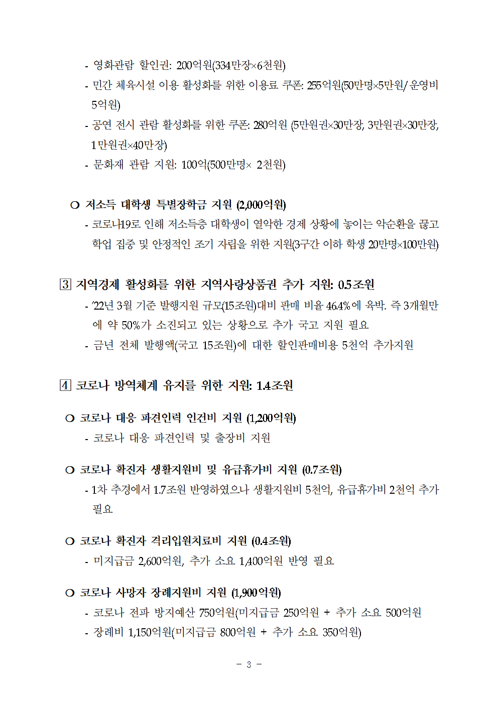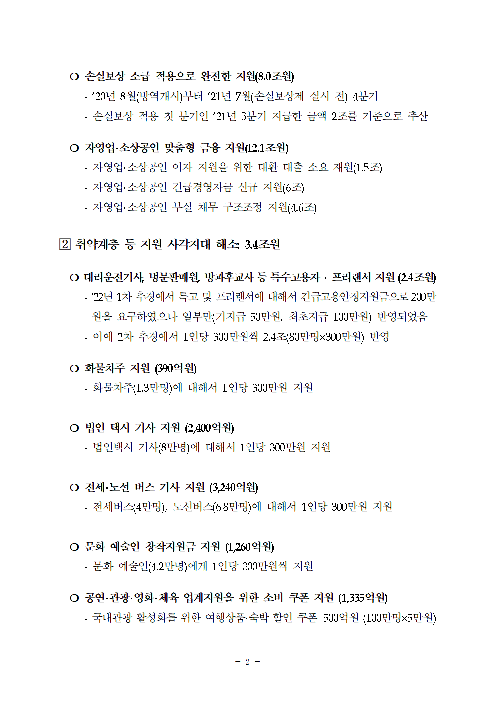 '22년 2차 민주당 추경안(규모 47.2조원) 제시