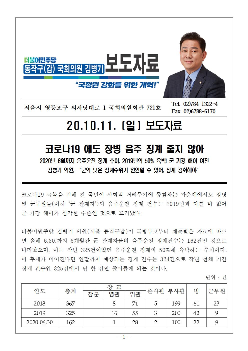 2020국정감사201011_김병기의원_국감보도자료(코로나에도음주징계줄지않아).hwp
