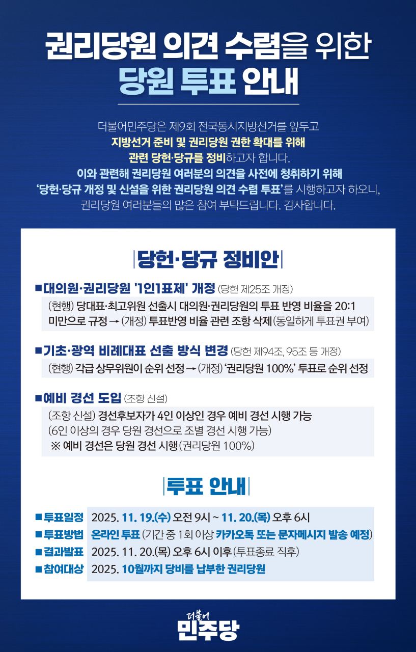 권리당원 의견 수렴을 위한 당원 투표 안내