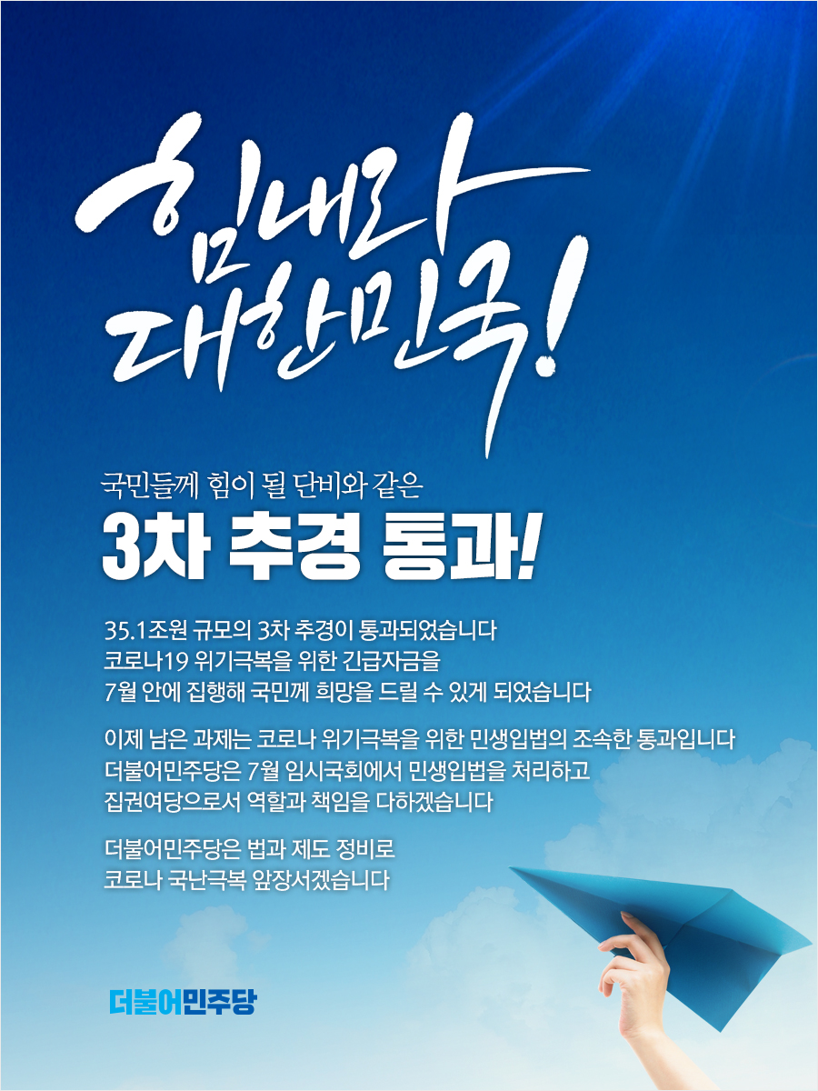 힘내라 대한민국! 국민께 힘이 될 단비와 같은 3차 추경 국회 통과!