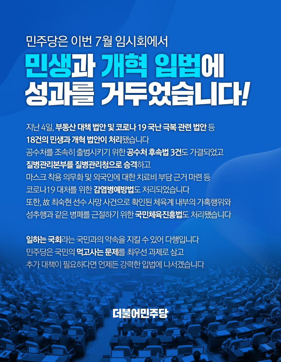 민생과 개혁 입법에 성과를 거두었습니다!