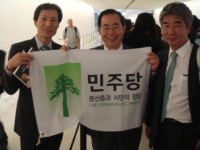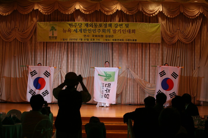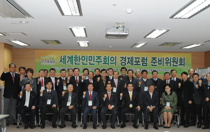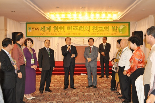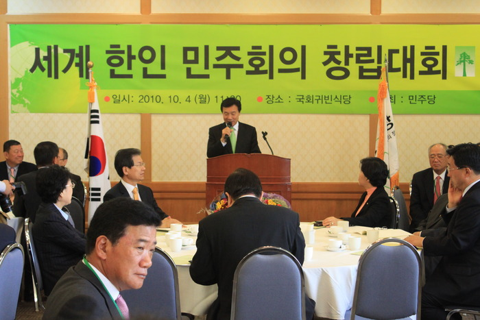 ▲ 2010년 10월 4일 세계한인민주회의 창립대회. 하루 앞선 10월 3일 전당대회에서 당 대표로 선출된 손학규 대표가 민주회의 의장자격으로 인사말을 하고 있다. ©민주회의