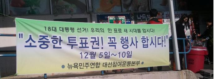 ▲ 뉴욕 한인타운에 내건 투표참여 홍보 현수막 ©민주회의