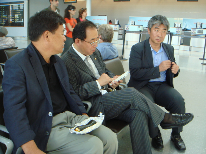 ▲ 1도시 1박 일정으로 미주지역을 순회 중에 토론토 공항에서 김밥식사. ©민주회의