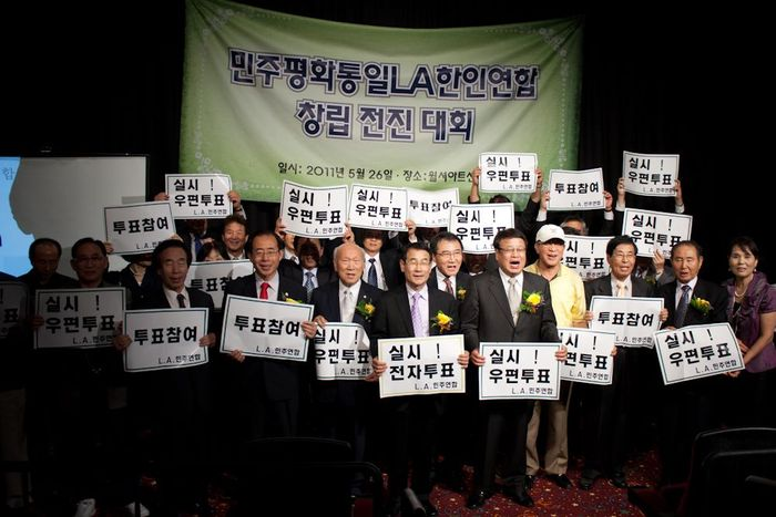 ▲ 해외 민주연합 (민주 평화 통일) 이 본격적으로 조직됐다. 사진은 2011년 5월 로스엔젤레스 창립대회 © 민주회의